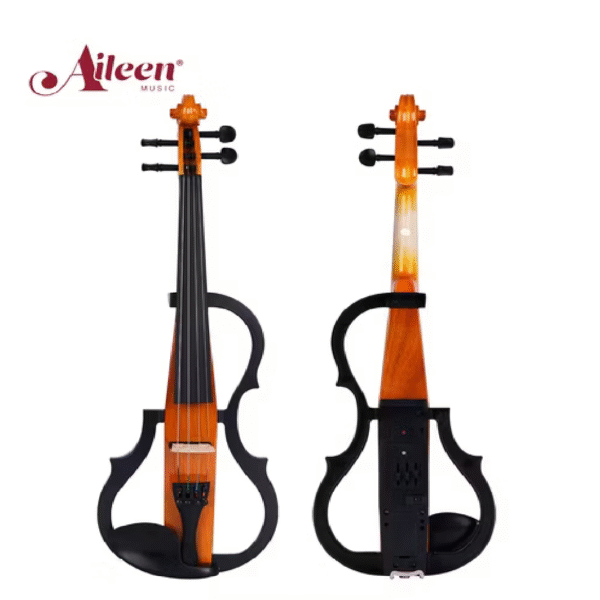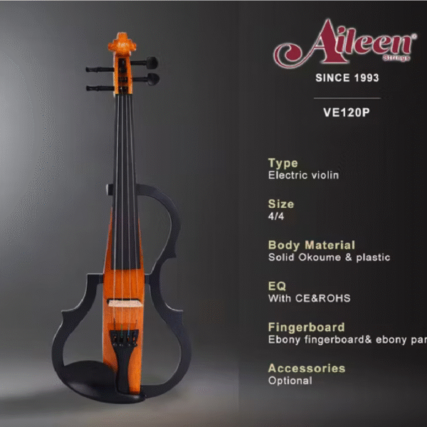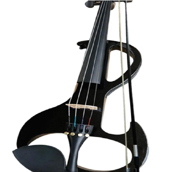violín eléctrico -Okoume sólido y cuerpo de plástico – Diapasón de ébano y piezas de ébano -Cola de fibra de