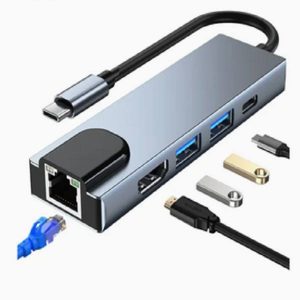 5 en 1 USB C tipo portátil C hub 100mbps adaptador USB HUB de lan3.0/2.0 PD la carga y puertos HDMI hembra