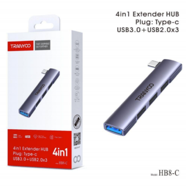 MODELO: HB8-C INTERFAZ ENTRADA: USB TIPO C 3.0 INTERFAZ SALIDA: USB3.0+USB2.0X3 MATERIA: ALUMINUM ALLOY TAMAÑO: 91.6X17.5X9MM SOPORTA: MAC OS, WINDOWS,