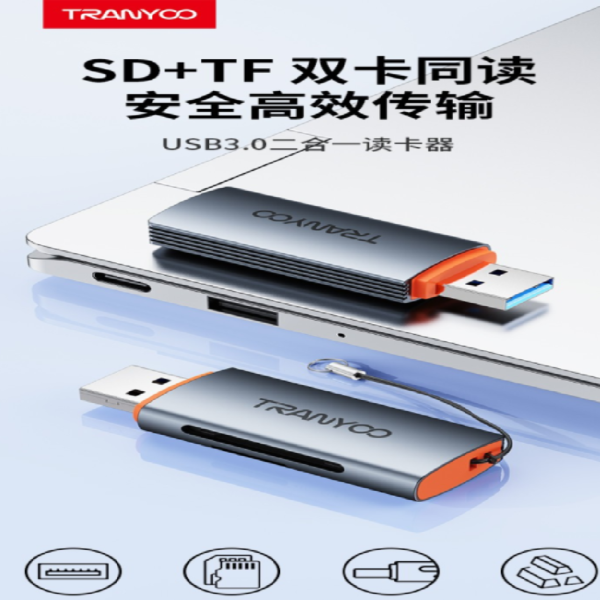 MODELO: T-EP2 ENTRADA: USB 3.0 SALIDA: SD+TF COMPATIBLE: MAC OS, WINDOWS, ANDROID MATERIAL: ALUMINUM ALLOY+ ABS TAMAÑO: 60.8X23.8X12MM