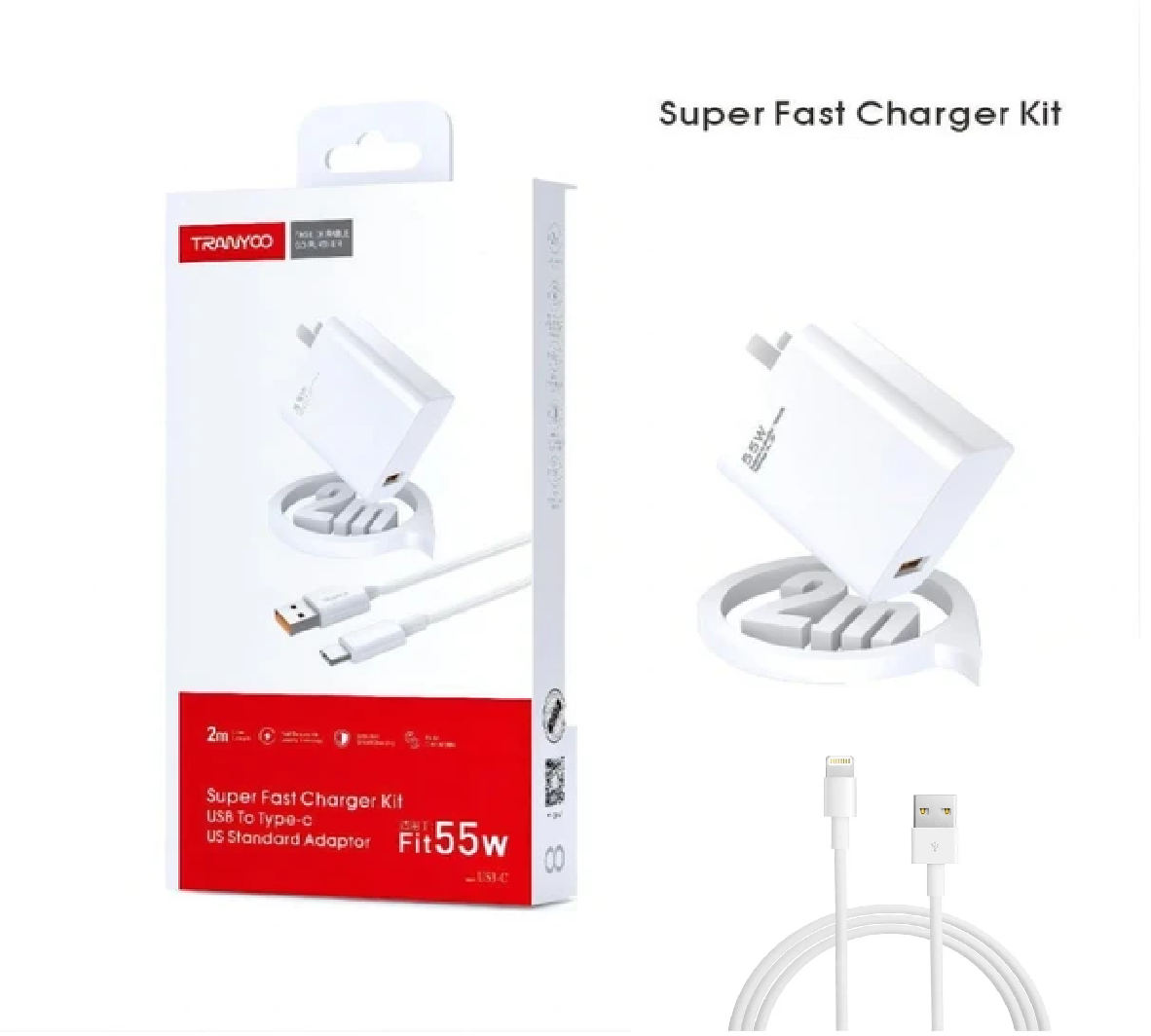 ADAPTADOR DE 55W, 1 PUERTO USB CON CABLE TIPO IPHONE 2M