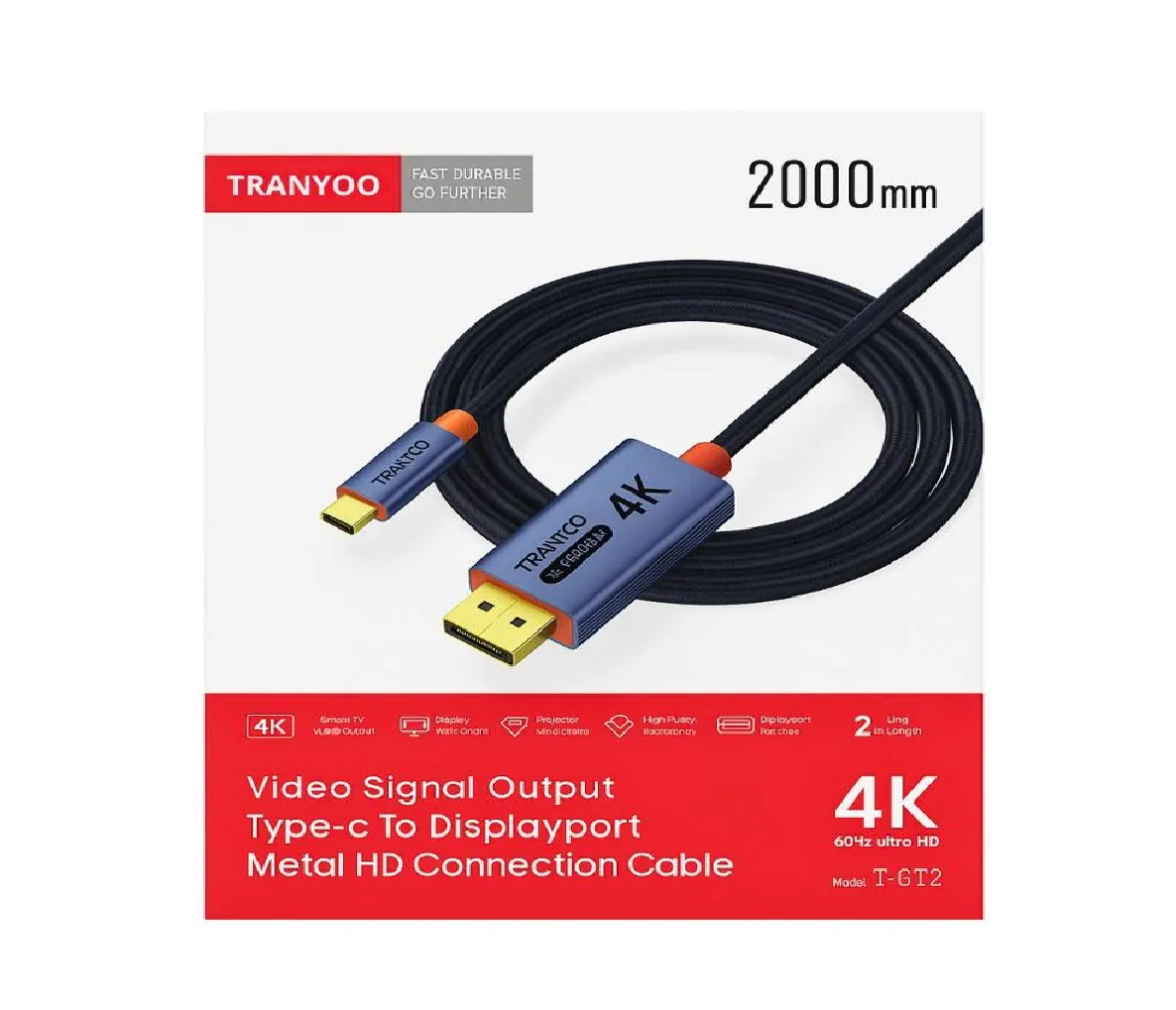 CABLE TIPO C A DISPLAY PORT 4K 2MT CON ESTUCHE