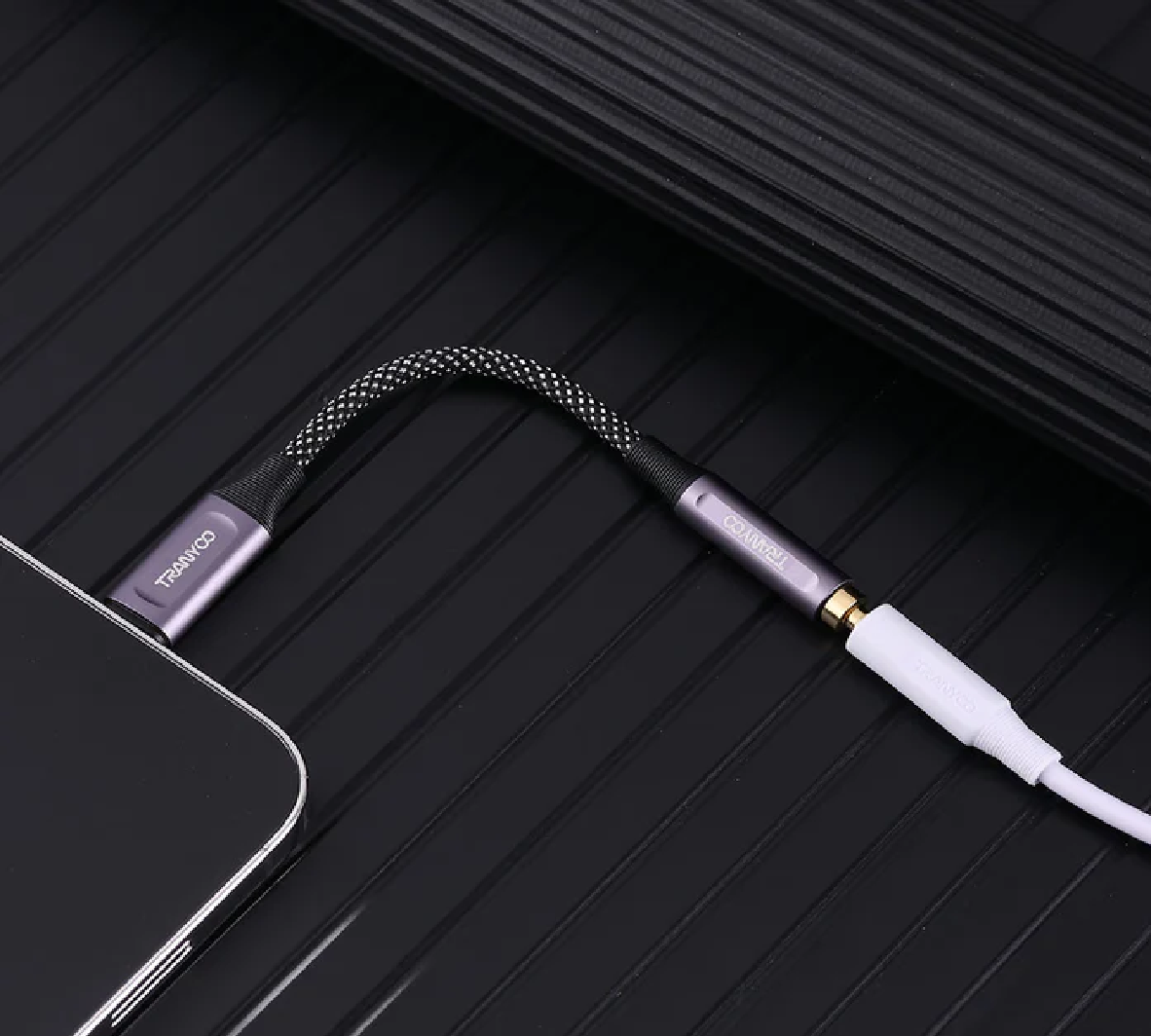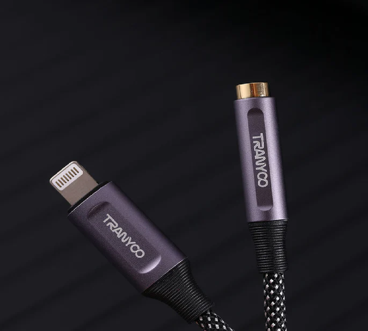 CABLE TIPO LIGHTNING A 3.5MM JACK 12CM GRIS TRANYOO