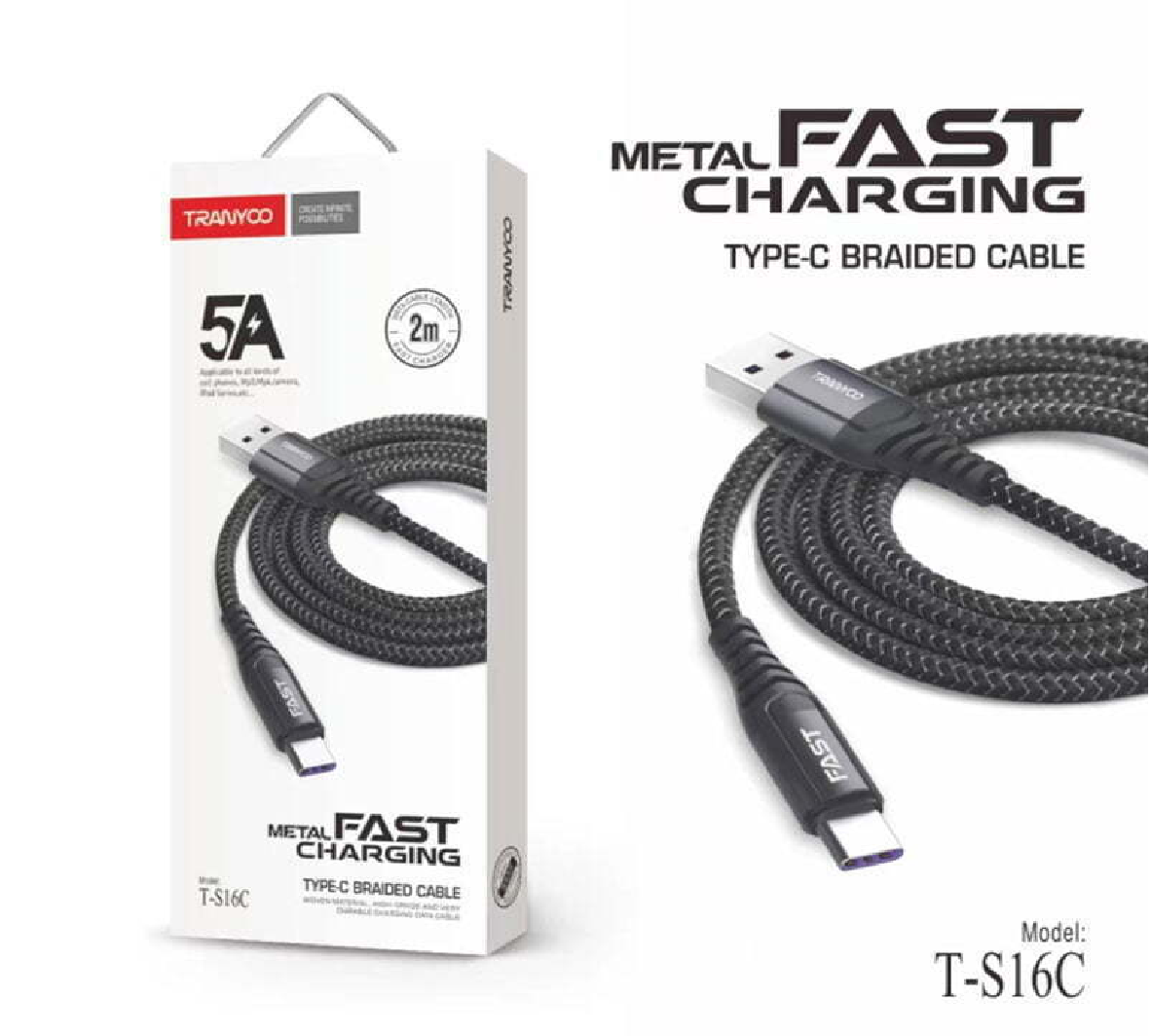 CABLE USB3.0 A TIPO C CARGA RAPIDA TRENZADO 2MTS NEGRO