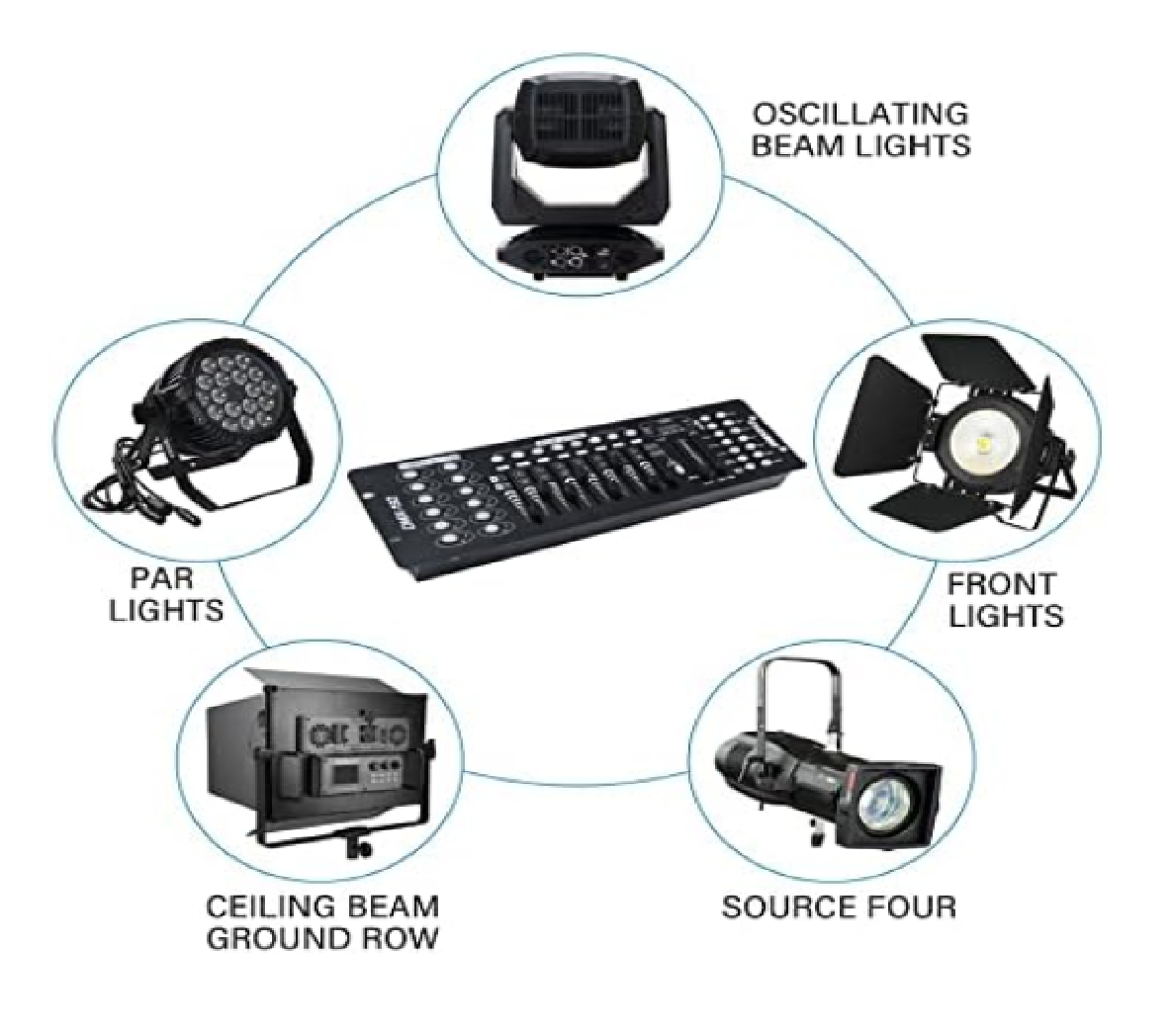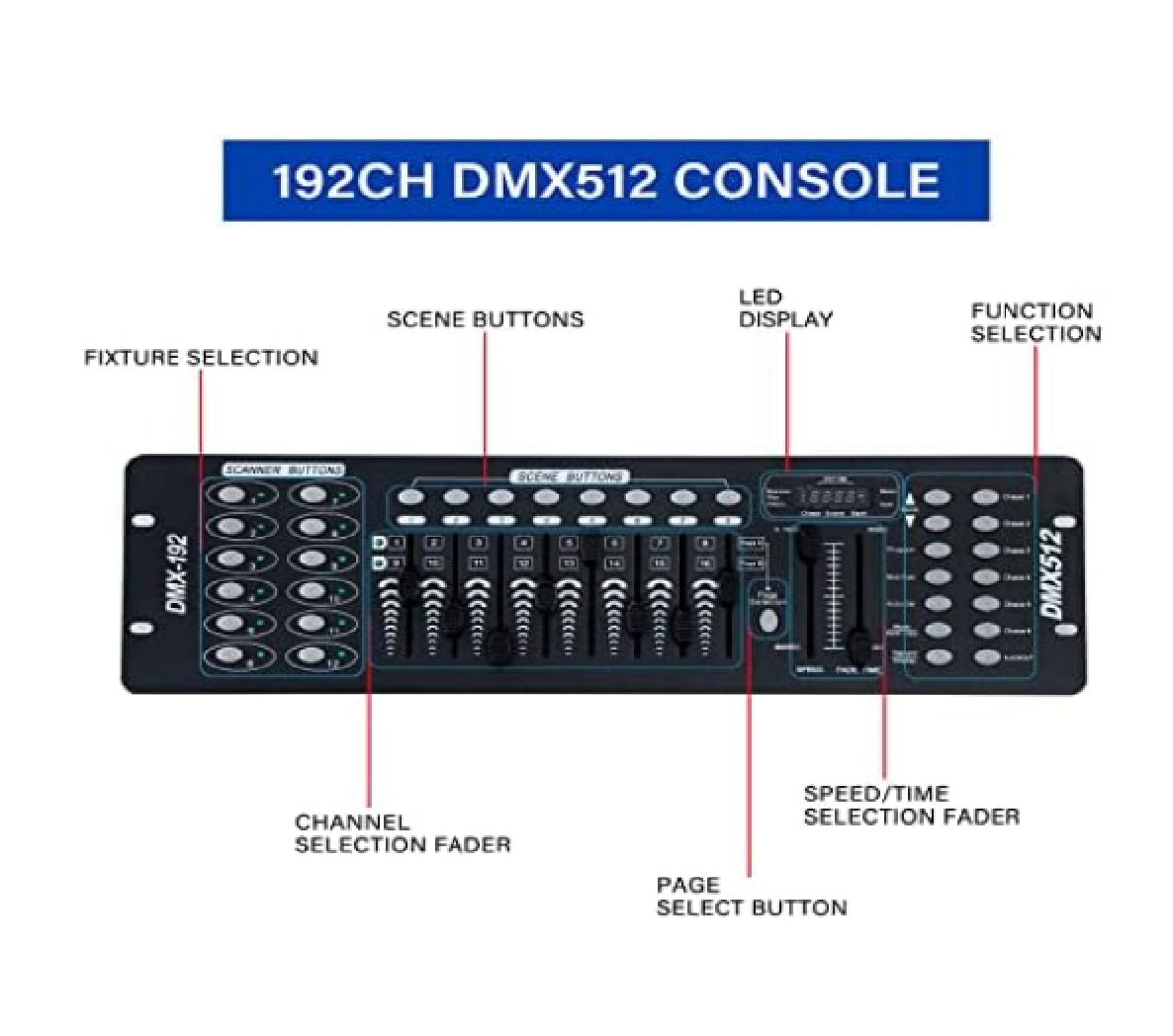 – 8 escenas programables. 8 potenciómetro ajustable para ajustar el tamaño de salida