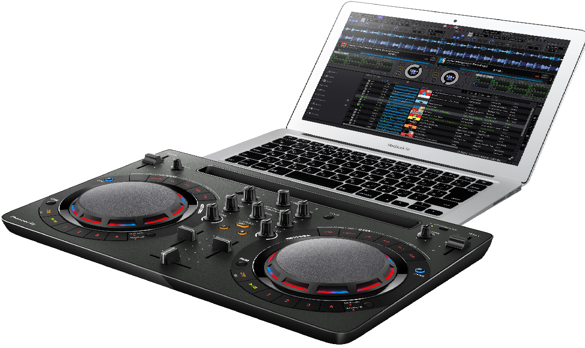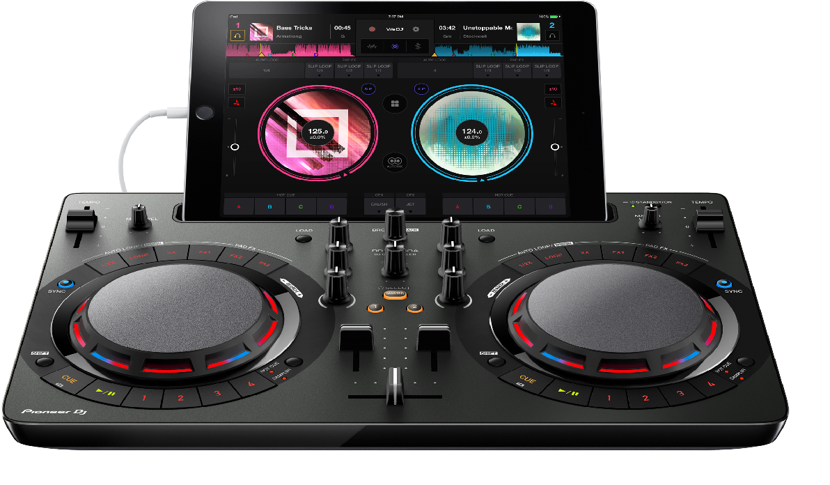 Incluye una gran cantidad de funciones profesionales, como Hot Cues, samplers, Pad FX y loops,  incorporadas en un diseño compacto y ligero. Aprende a ser DJ con su diseño sencillo y a configurar equipos profesionales, incluyendo multireproductores CDJ y mesas de mezclas DJM.
