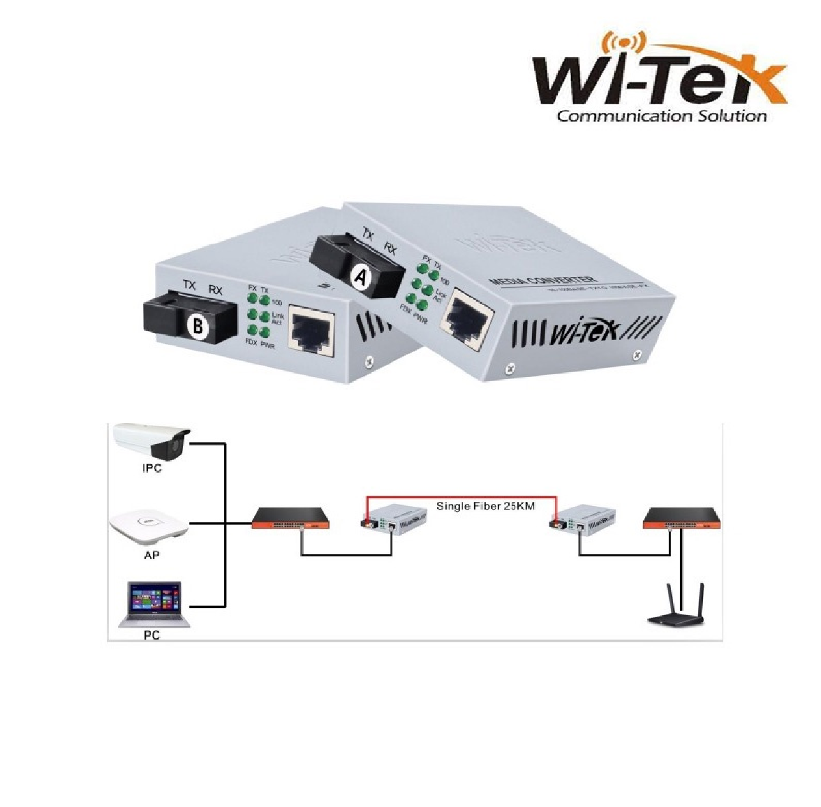 CONVERTIDOR DE FIBRA OPTICA A LAN RJ45 MEDIA 25K 100MBPS