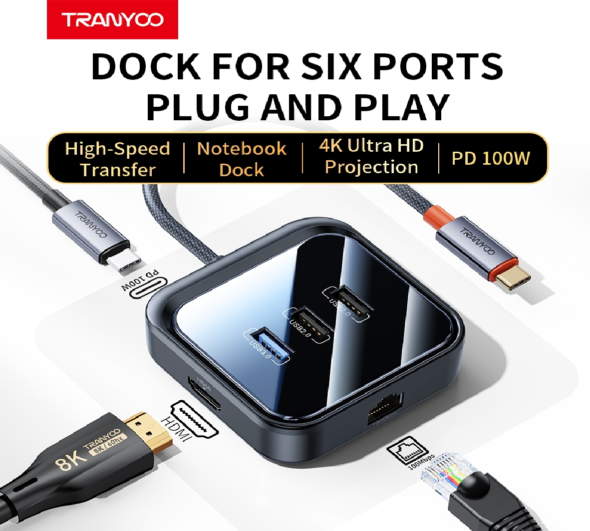 HUB PD100W+1P*USB3.0+2P*USB2.0*2+RJ45+HDMI