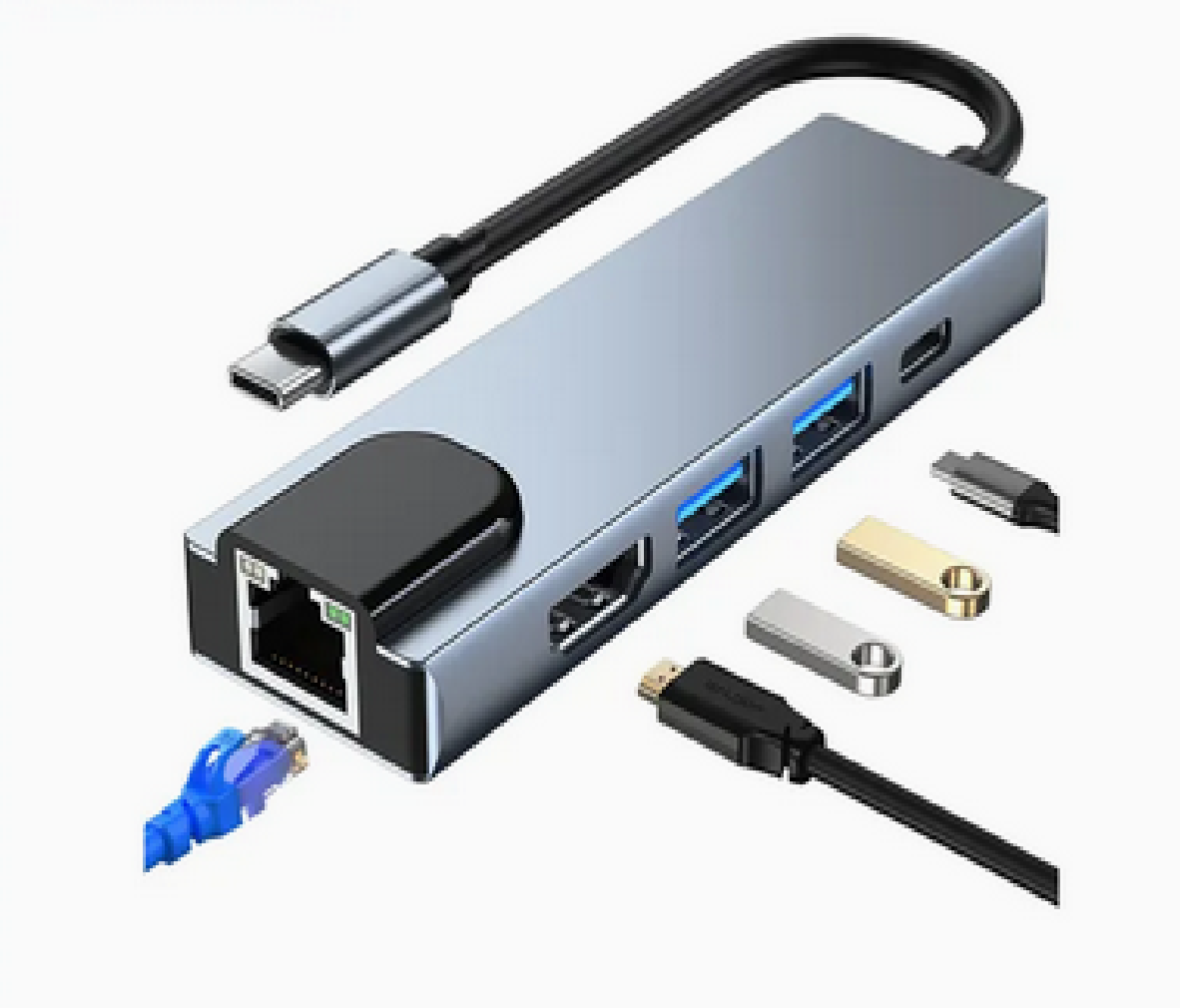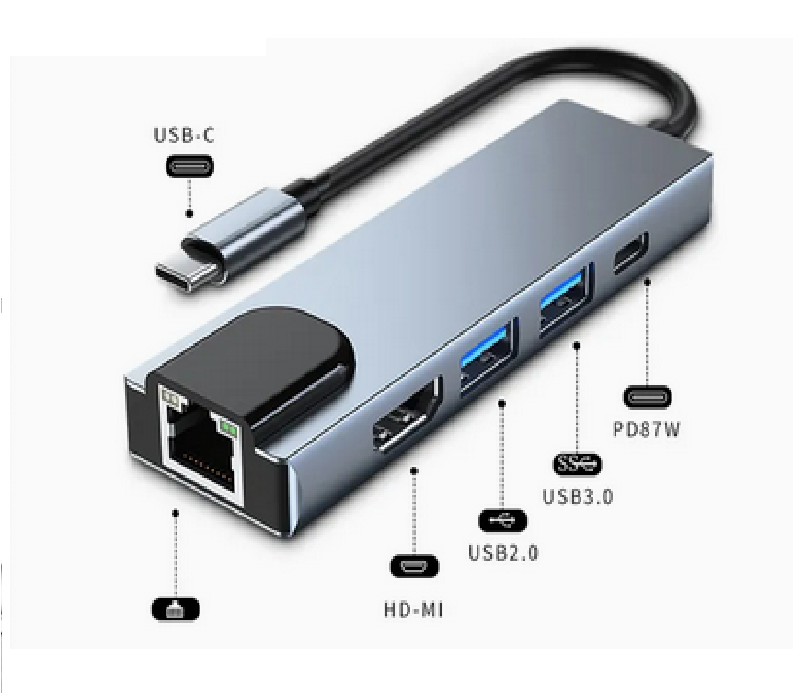 5 en 1 USB C tipo portátil C hub 100mbps adaptador USB HUB de lan3.0/2.0 PD la carga y puertos HDMI hembra