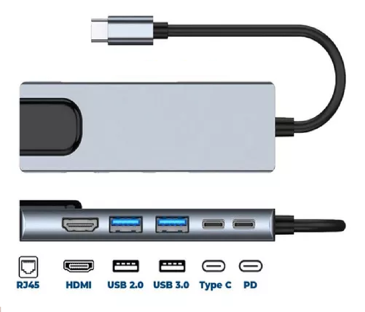 HUB TIPO C 5 EN 1 USB-1HD/PD/RJ45