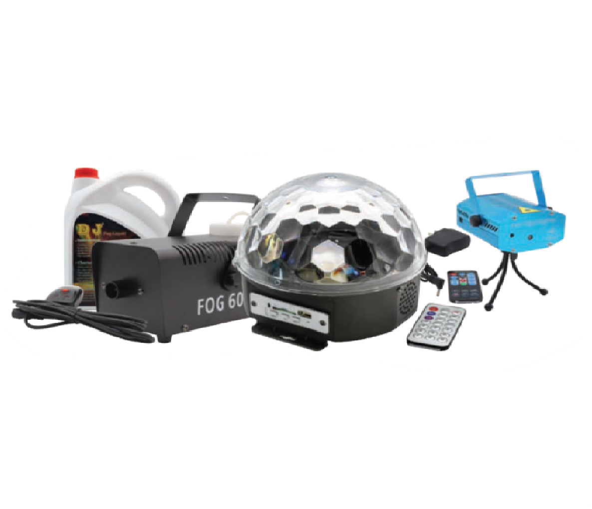 KIT DE LUCES, LASER Y CAMARA DE HUMO