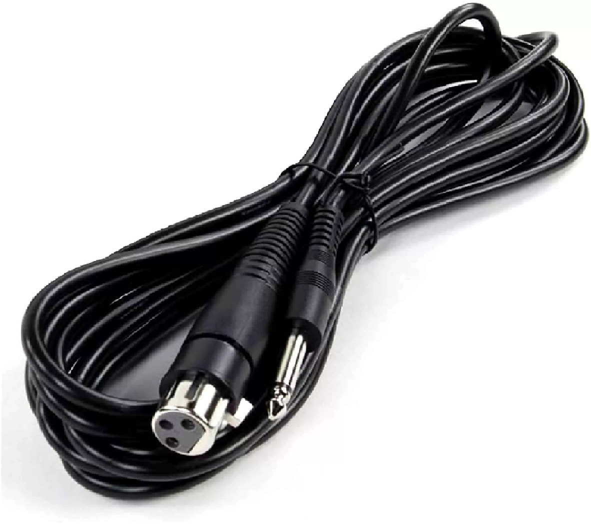 - Cable y conectores: 15 ft. (4.5m), XLR hembra al macho 1/4 in. (6.35 mm) plug