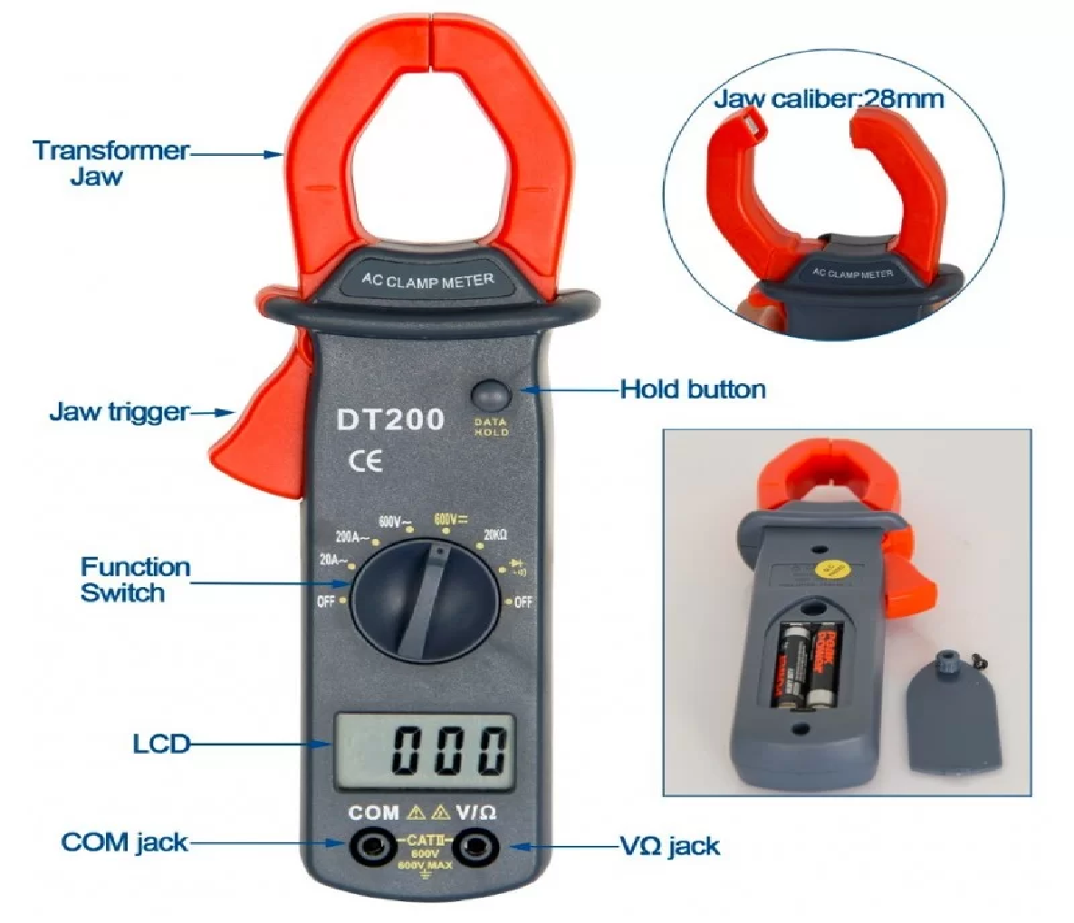 - Corriente CA 20A-200A + / – (. 2 0% 5 DGT)