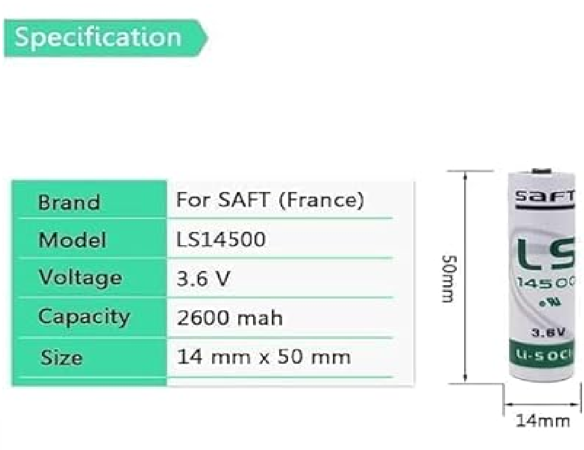 - Composición de la celda de batería: Cloruro de litio-tionilo ( Li-SOCL2 )