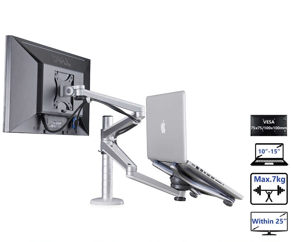 Soporte de Monitor LCD de 27 pulgadas de doble brazo para escritorio Multimedia de OA-7X + soporte para portátil soporte de mesa movimiento completo doble brazo para montaje de Monitor soporte