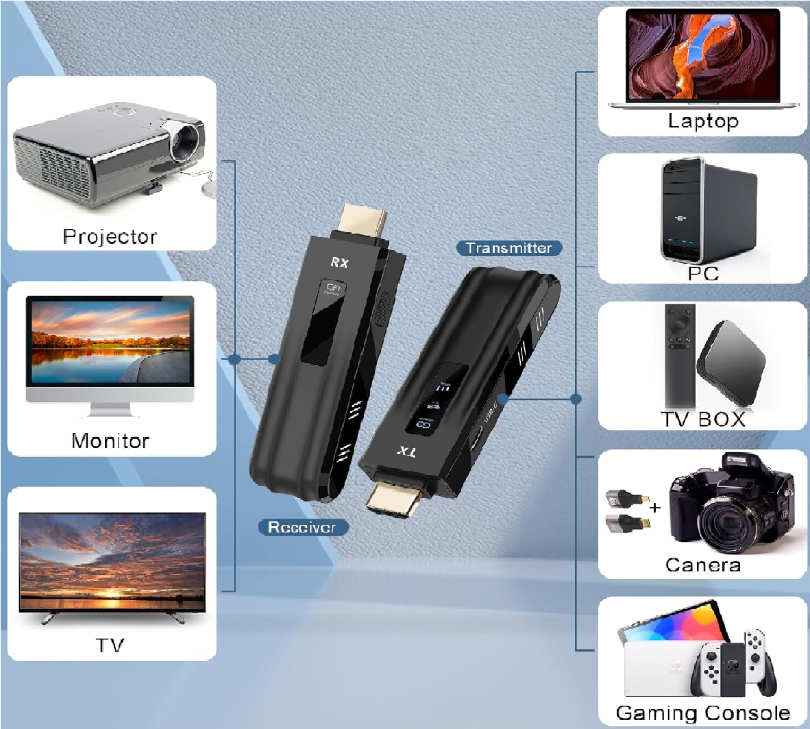 TRANSMISOR Y RECEPTOR INALÁMBRICO HDMI 50M DISTANCIA
