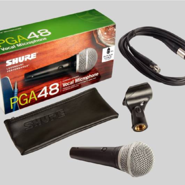 MICROFONO SHURE PGA48 CON CABLE Y SOPORTE PARA GRABACIÓN